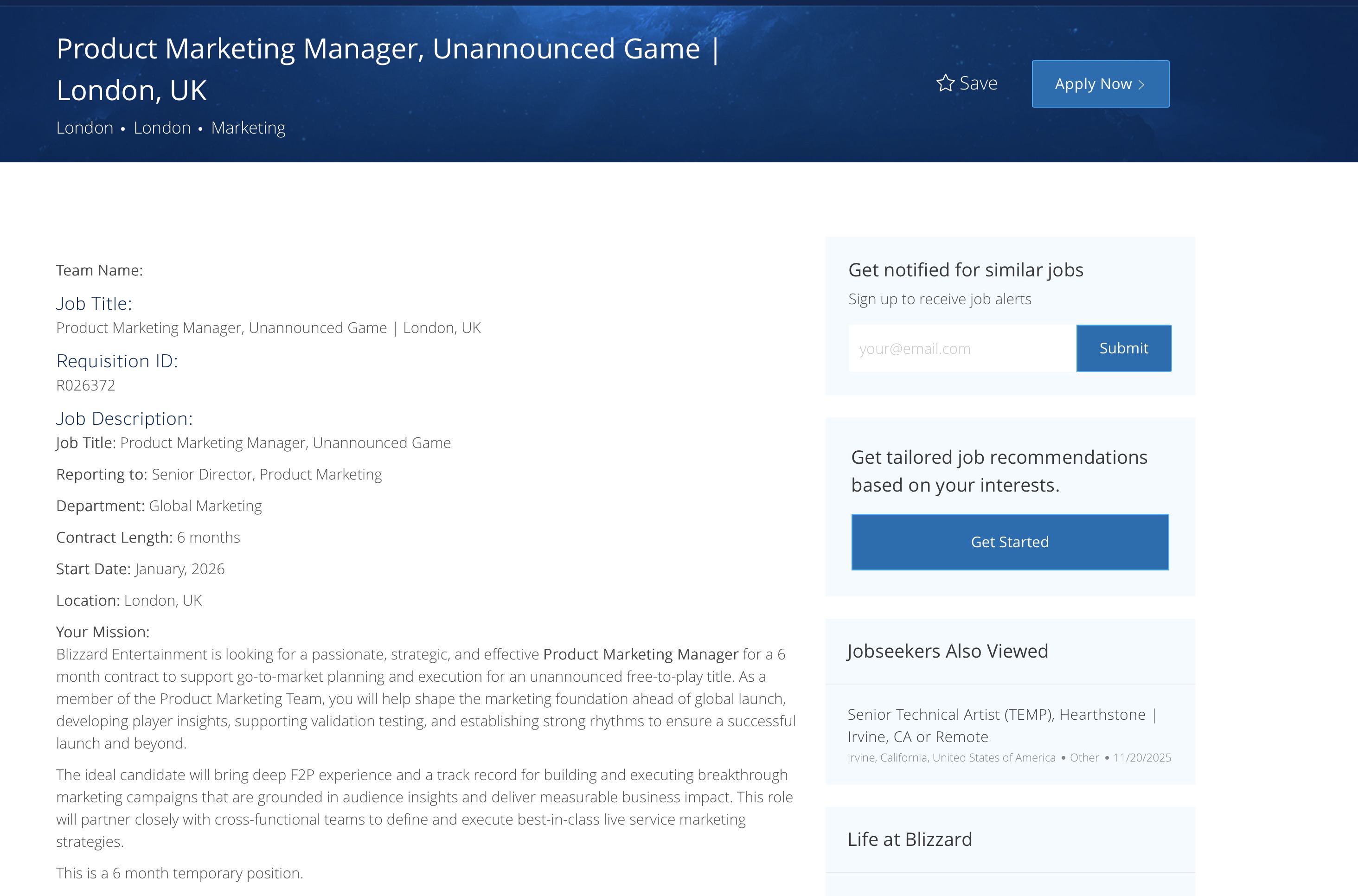 Blizzard has posted a Product Marketing Manager role for an unannounced game back in November 2025, and the timing’s doing more than the listing itself. It’s a 6-month contract starting January 2026, which immediately raises the question: what exactly needs to be ready that early?