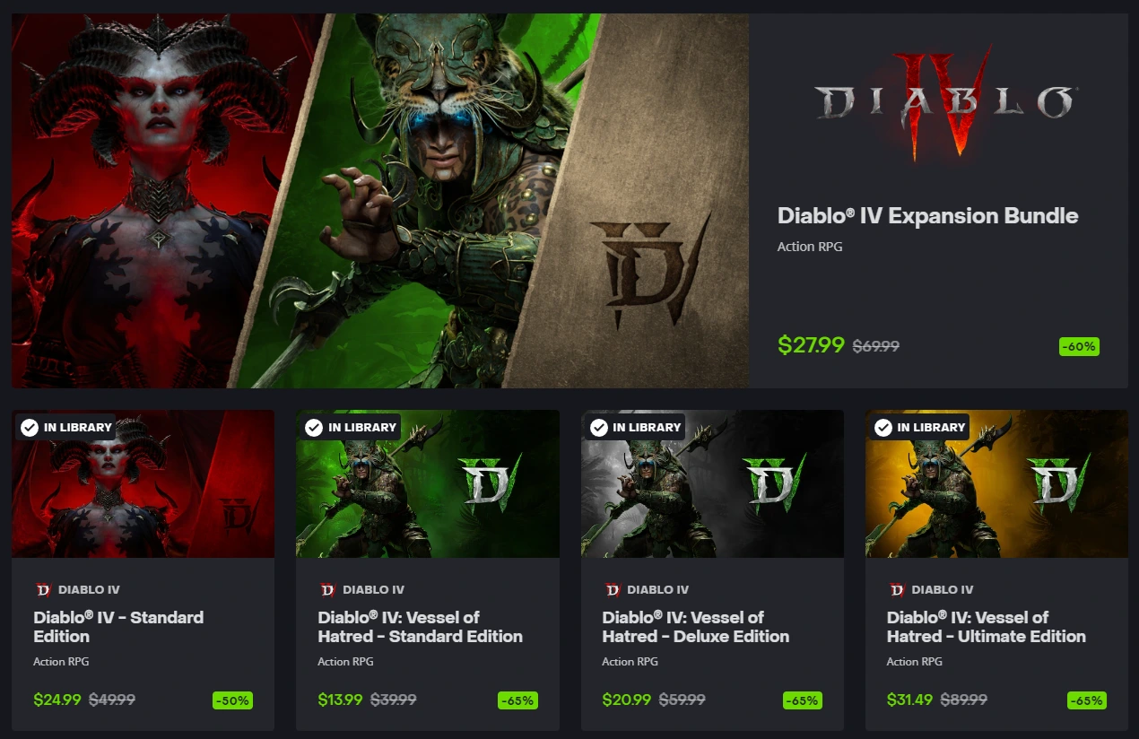 • Diablo IV: Vessel of Hatred – Ultimate Edition — up to 65% off