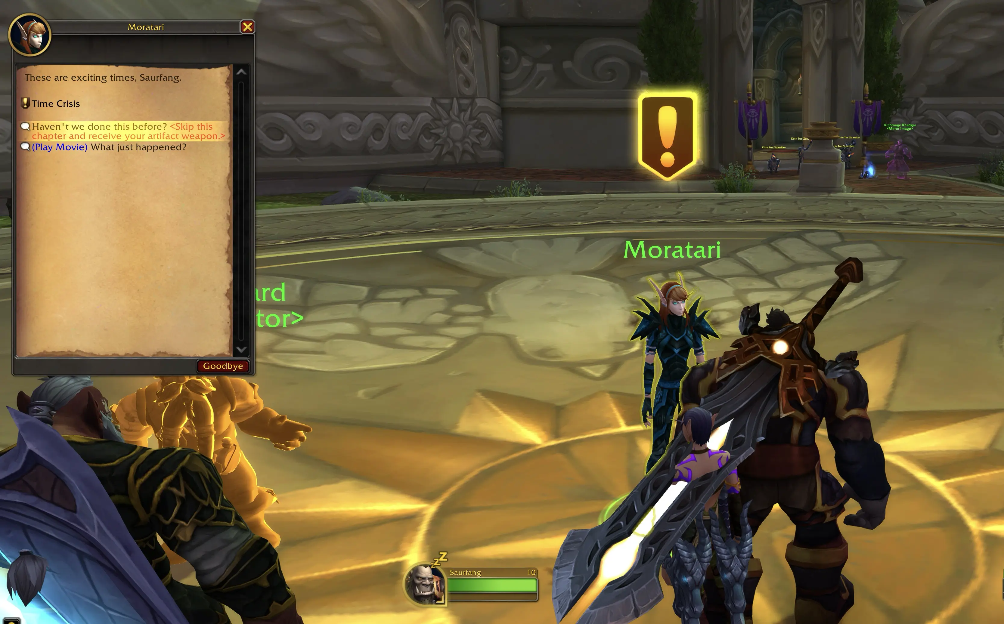 Once you log in to the game, talk to Moratari standing before you and pick the skip option for the Artifact weapon.