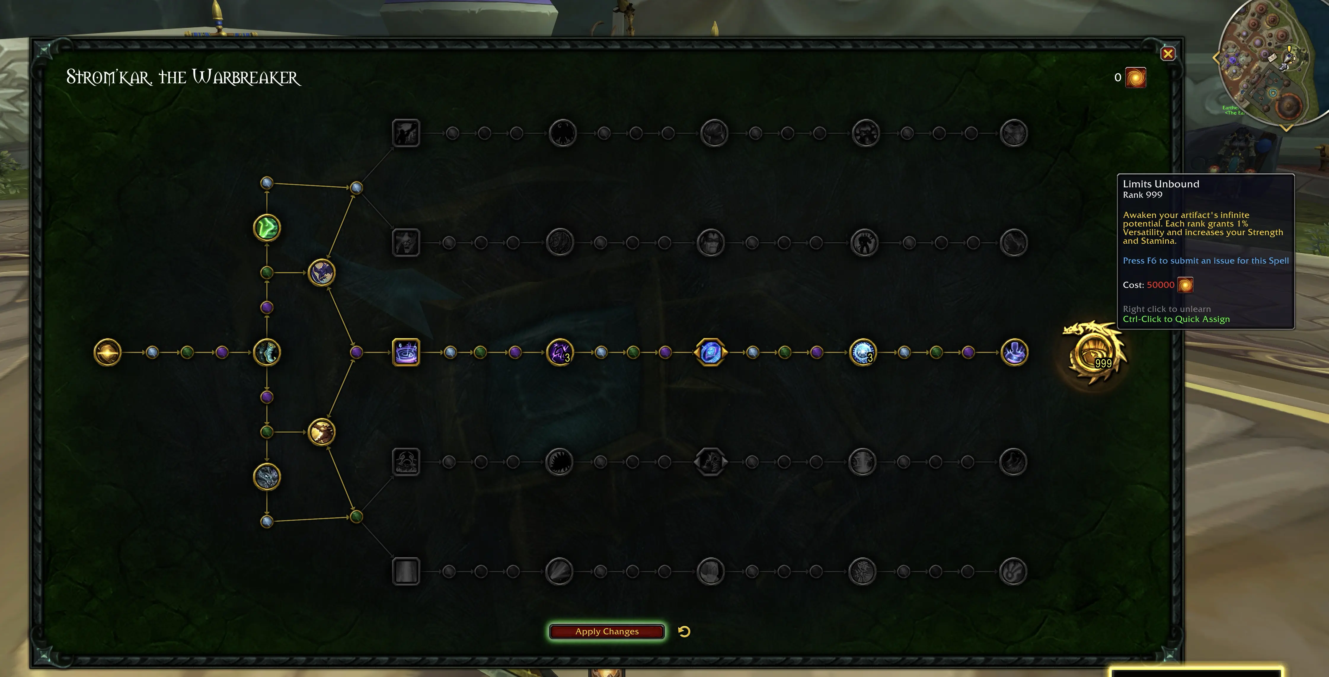 Open your Artifact weapon and unlock all the abilities up to the point where you pick an Artifact trait. Keep in mind you can only follow one path. Then, buy the Limit Unbound Infinite Power Artifact trait. Ctrl + Click to quickly assign your points.