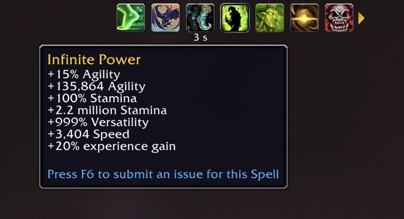 Here’s a screenshot of the Infinite Power buff on my Demon Hunter. The stats were as follows: