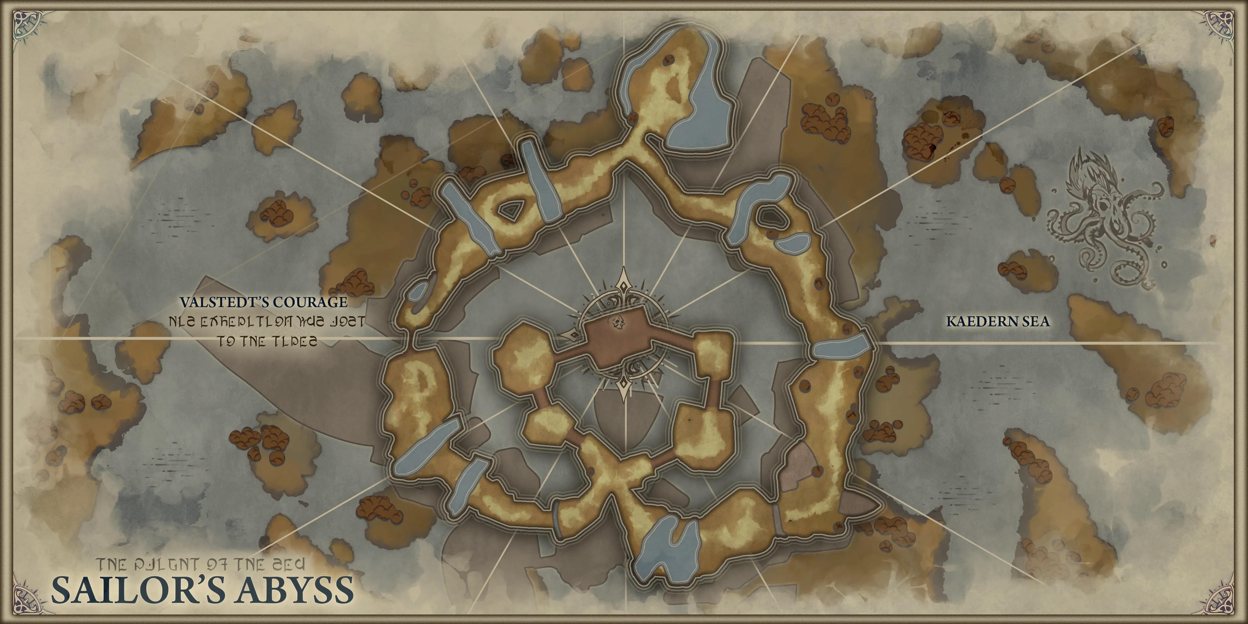 Sailor’s Abyss is a ring-shaped island in a forgotten corner of the sea, filled with ghostly spectres, undead crew men, water elementals, and deadly flora. At the center of the island is the shipwreck that holds Sinthara, the Sea Witch. She commands legions of undead with her deadly siren song, threatening to expand her reach beyond the sea.