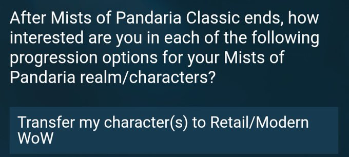 The burning question on everyone’s minds right now is will the mount ever transfer over to retail? While this isn’t intended right now, Blizzard has been sending out surveys to players via mail, asking about what should happen to their MoP Classic characters when the latest Classic chapter ends, and one option included a character transfer option to live, so anything is possible in the future.