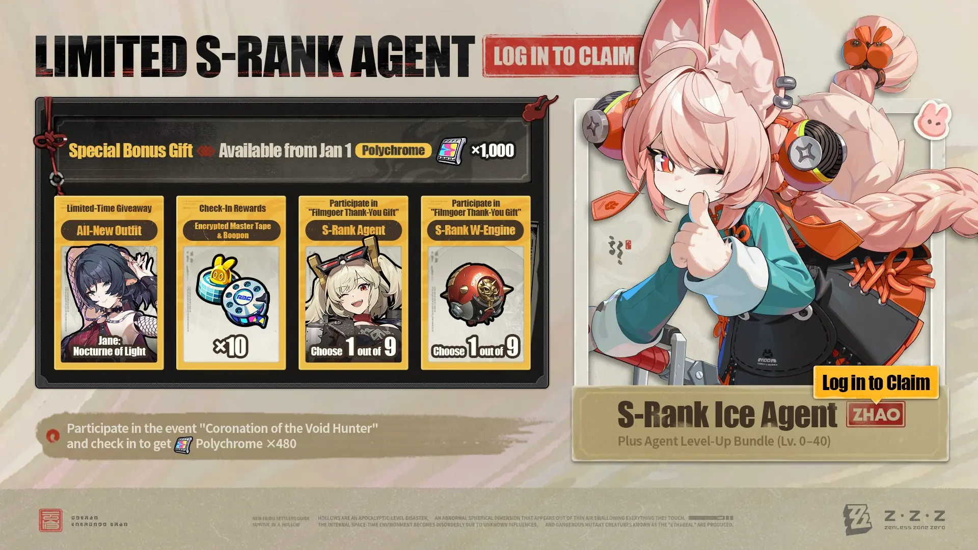 - To celebrate Zenless Zone Zero winning the Grand Award at the PlayStation Partner Awards 2025, players can claim 1,000 Polychromes via in-game mail starting January 1, 12:00 (UTC+8)