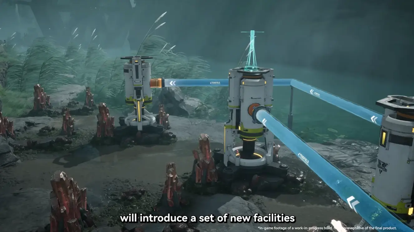 Another new addition is the Conduit system, designed to solve long-distance transportation issues between facilities. Conduits allow liquids to travel across terrain and obstacles by connecting an Inlet to an Outlet. Once a liquid is fed into the inlet, it automatically travels to the connected outlet.