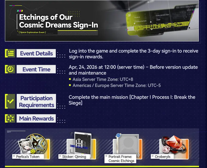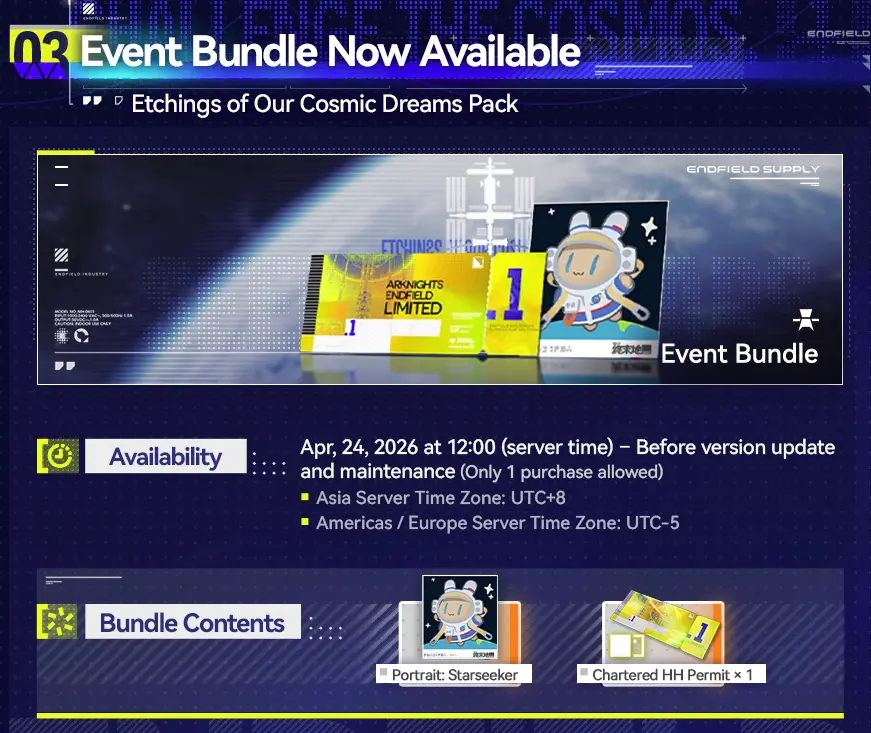 A new event is about to go live in Arknights: Endfield, giving us a simple way to pick up some extra rewards during this update! The “Etchings of Our Cosmic Dreams” event starts on April 24 at 12:00 (server time) and will run until the next version update and maintenance.