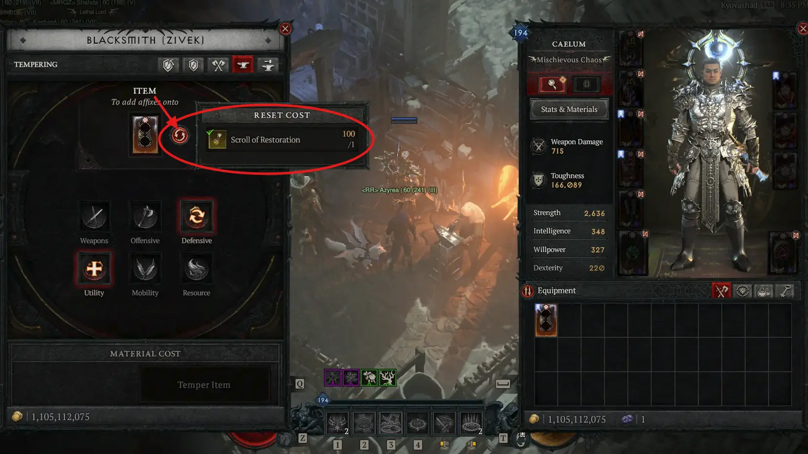 You can click the reroll button multiple times in a row and instantly stack up multiple additional temper tries. No rolling in between, no extra clicking, you just stack your tries, and then roll until you get your maxed-out affix. It does not change the odds or the results, but it does save a surprising amount of time, especially if you are tempering a lot of gear or really trying to get the perfect roll.