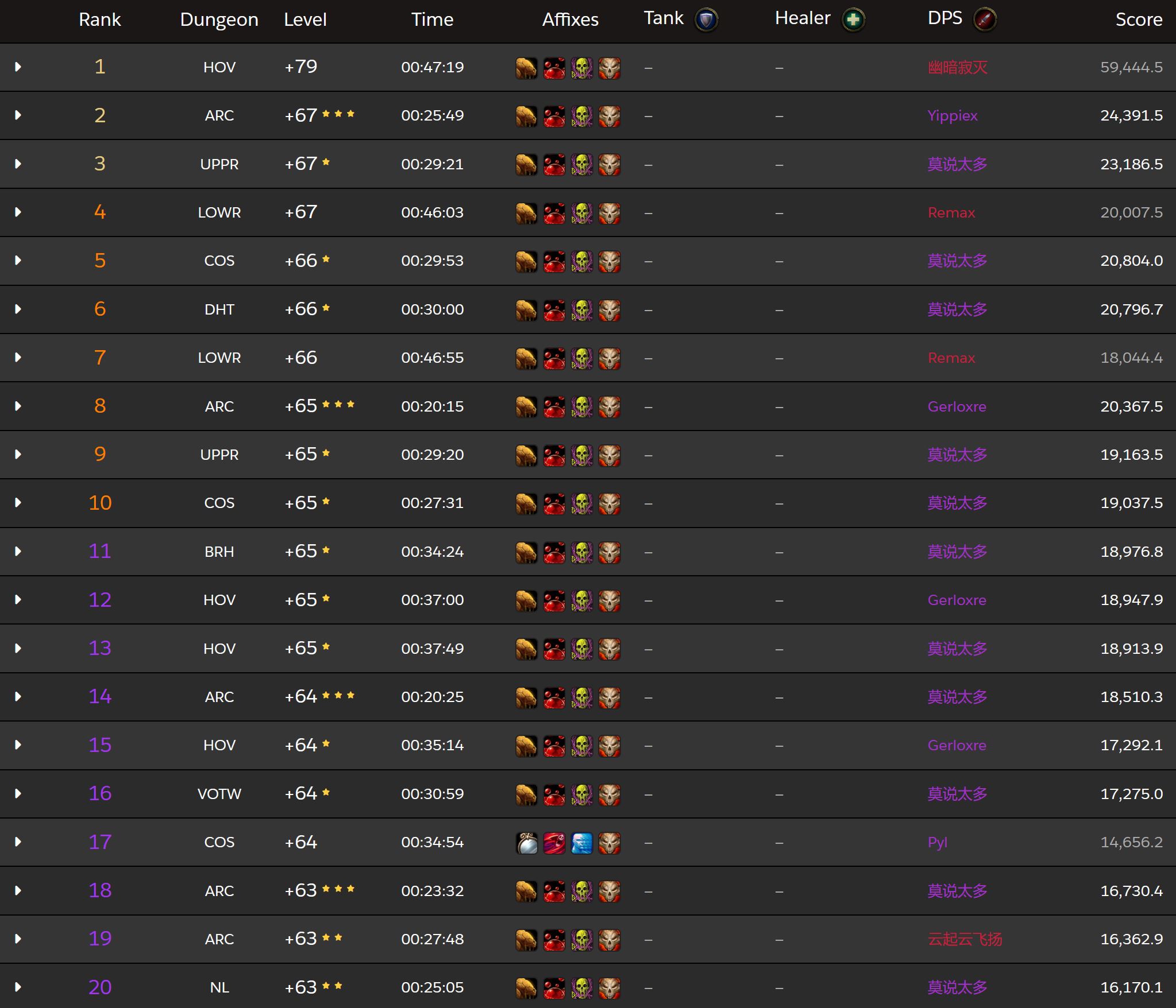 Here are the top 20 solo runs, as Raider.IO has a separate leaderboard for them!