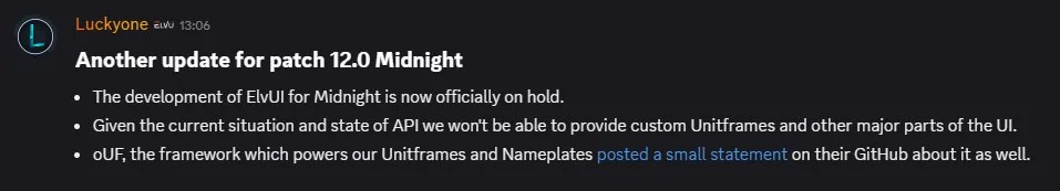 From Mythic raiders to casuals, ElvUI made WoW feel smoother! It stripped away Blizzard’s default frames and gave players full control. ElvUI developer LuckyOne explained that the current API doesn’t allow custom unit frames in Midnight. Because of that, the team’s putting development on hold, at least until Blizzard changes the course…