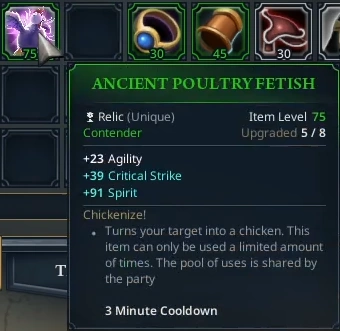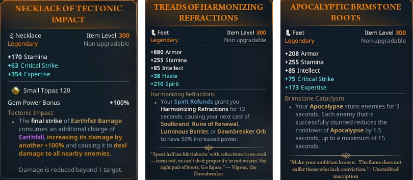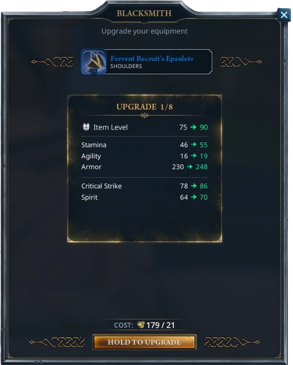 - Epic: Dropped from Adept’s Capstone dungeon and Champion difficulty dungeons. Item level caps at 240.