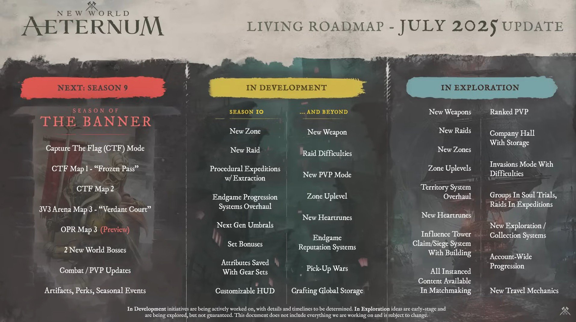 Additionally, prior to the launch of Season 10 of New World: Aeternum, the team shared the following roadmap which shared a handful of game-changing updates.