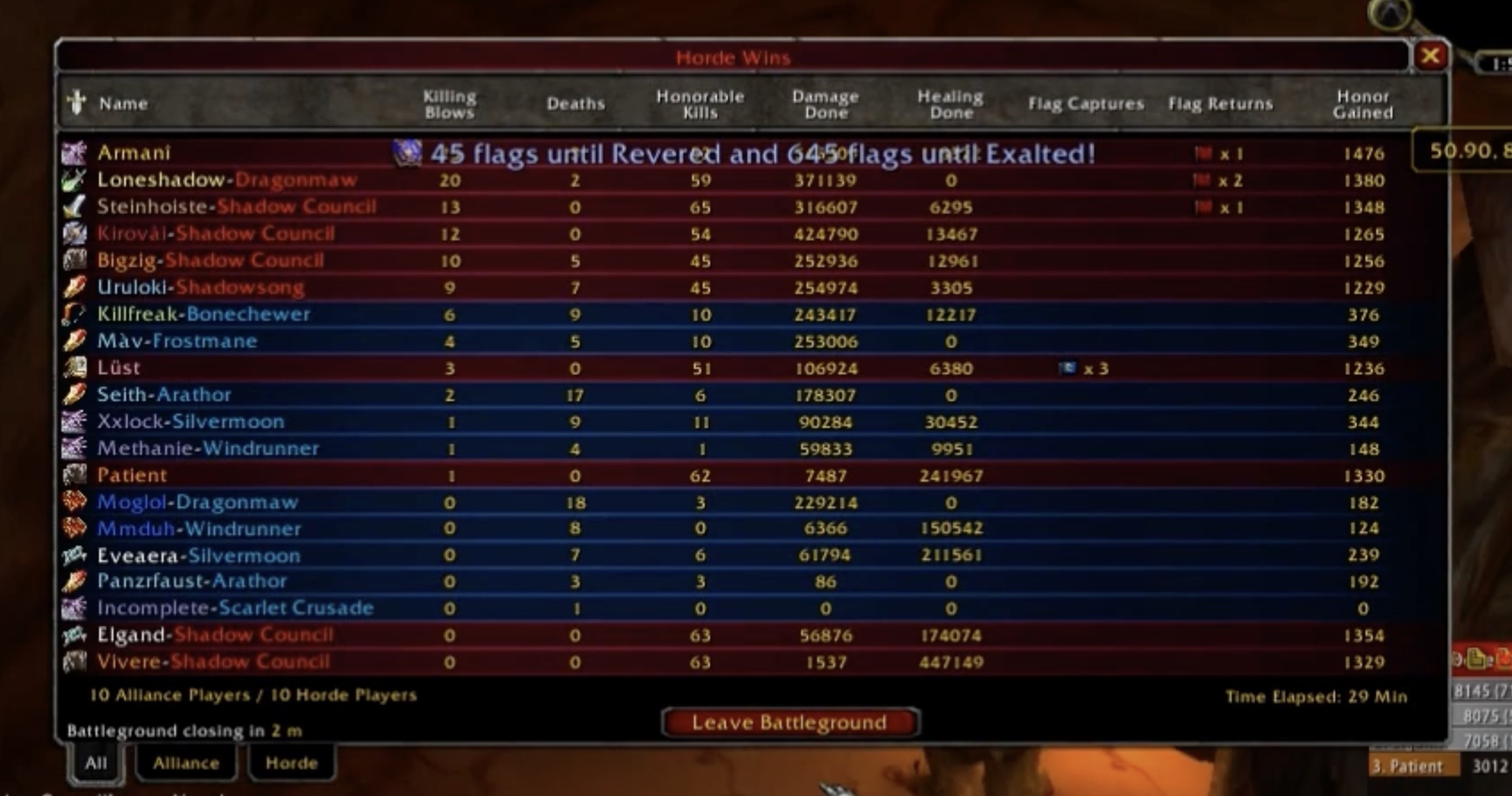 The Horde completely decimated the Alliance during the run.