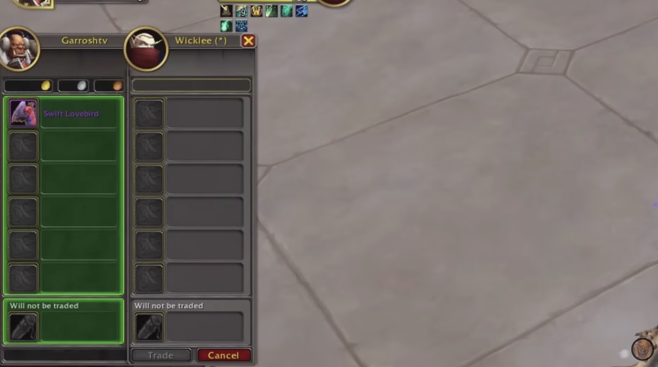 Using the 20 million gold, GarroshTV began purchasing high-value items like Panther mounts, Sky Golem iconSky Golems, and more. However, he quickly discovered that letters couldn’t be traded and unique items couldn’t be wrapped, forcing him to trade some items directly, losing the surprise factor. The hours spent writing those letters also went to waste!