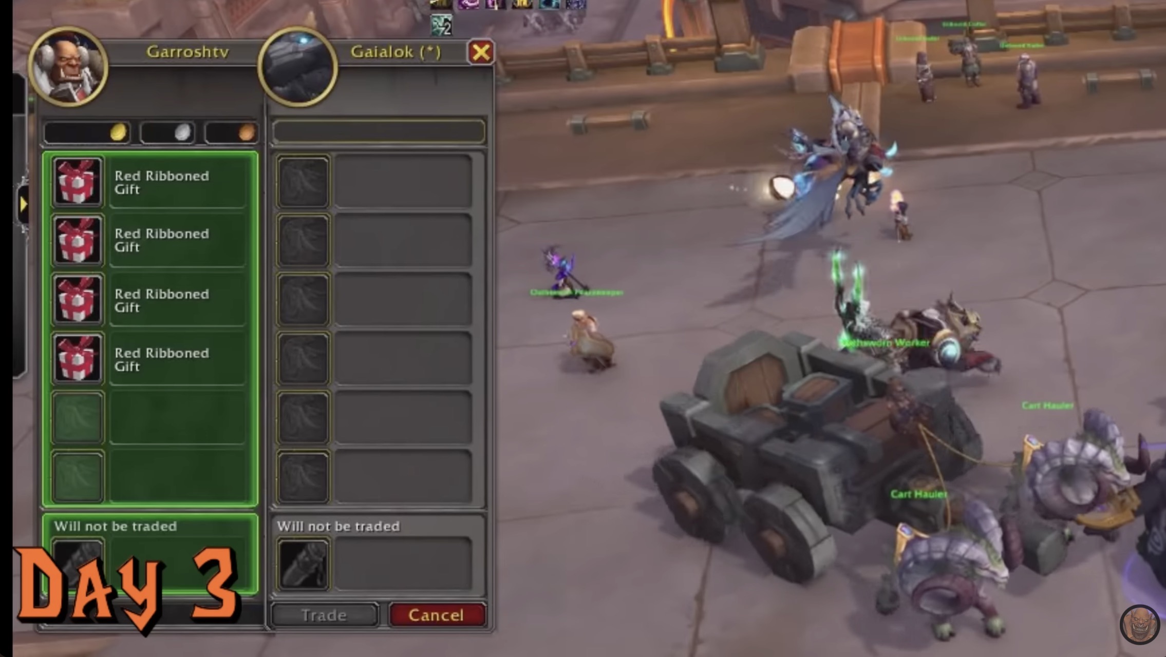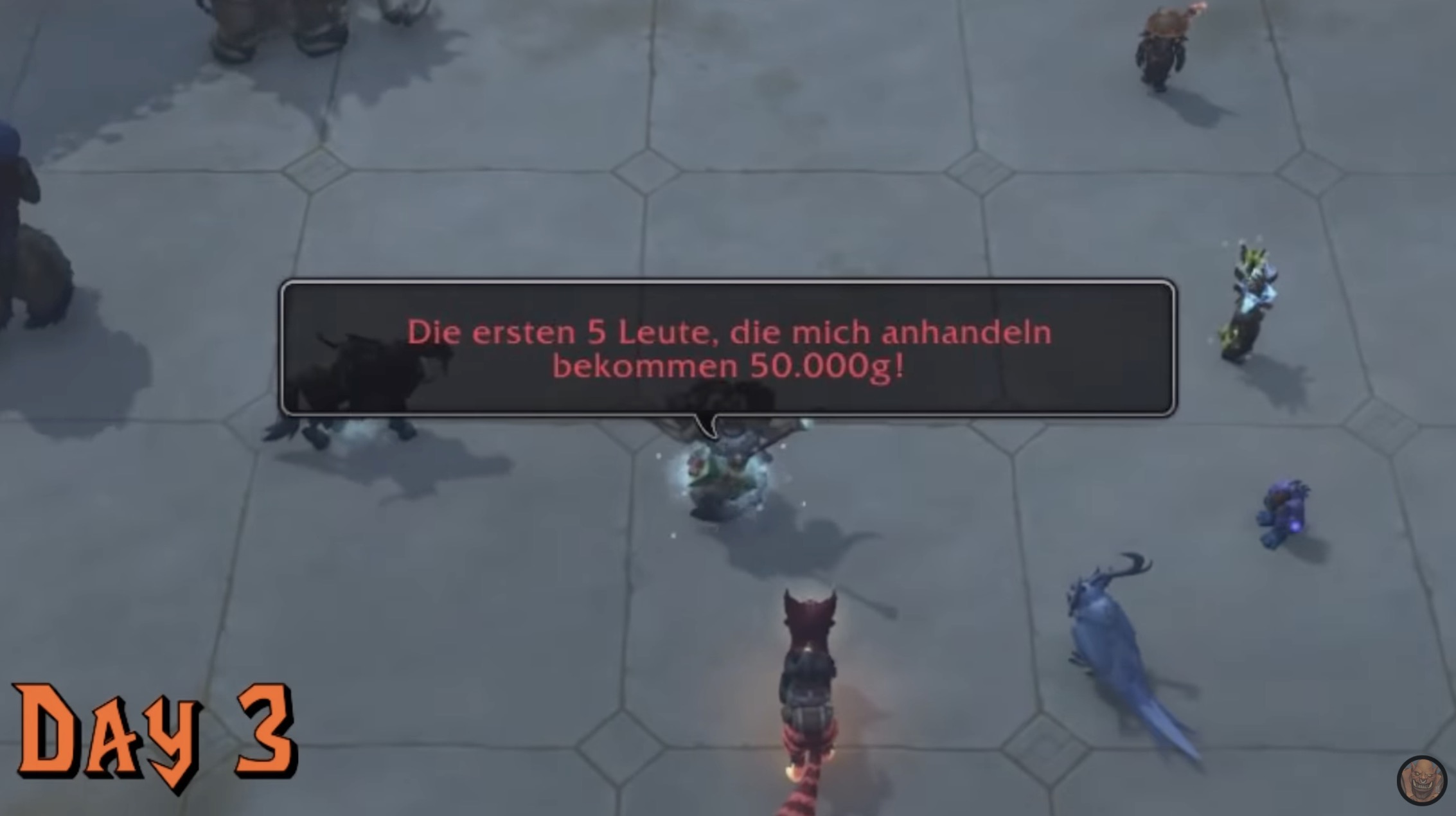On Day 3, GarroshTV went to German-speaking realms and to make it a bit interesting, he gave away 50K gold to the first 5 people in Dornogal who traded him.
