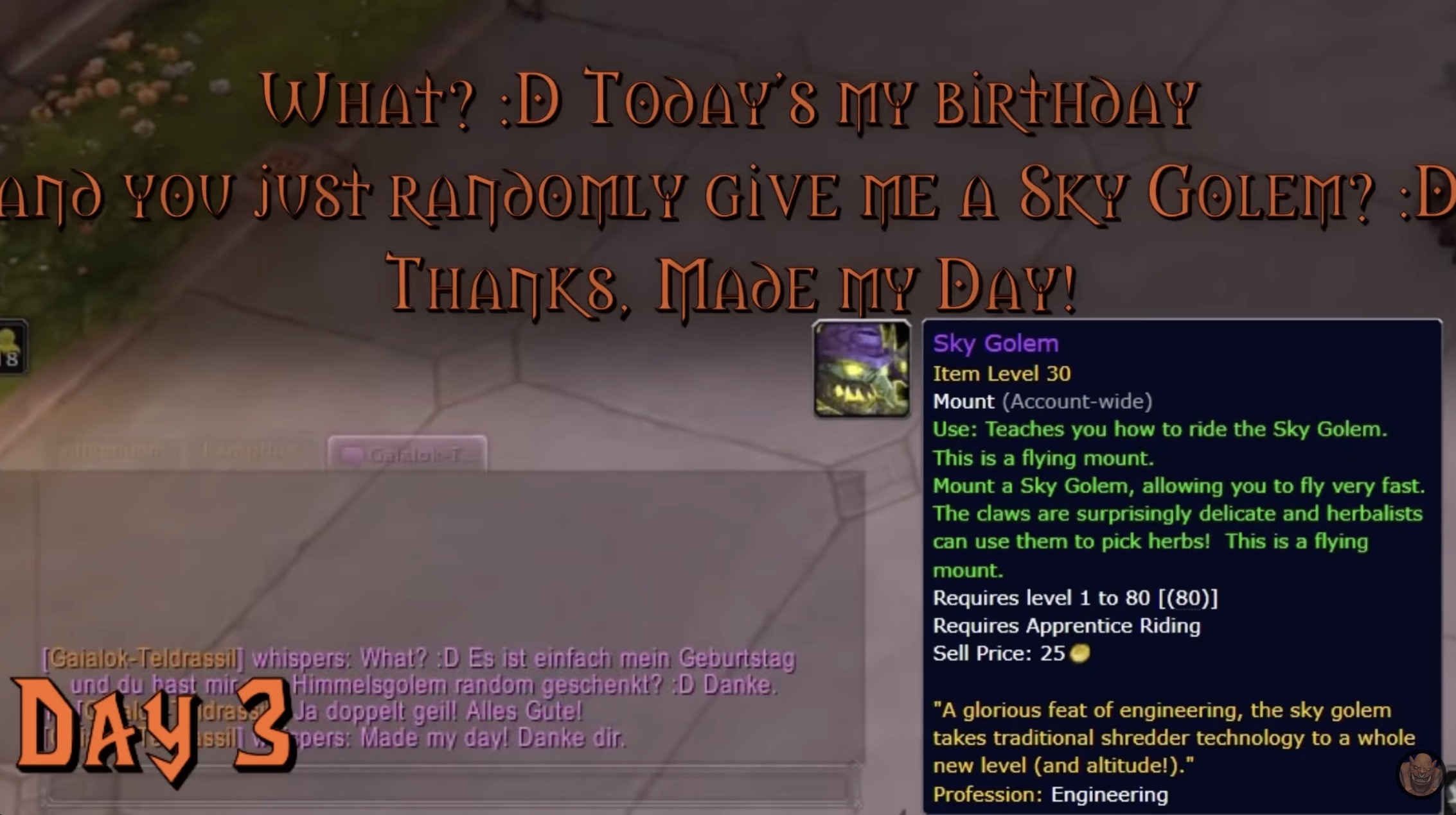 Someone received a Sky Golem and said it was their birthday, so GarroshTV gave him four additional mounts, and unfortunately, one duplicate by mistake!