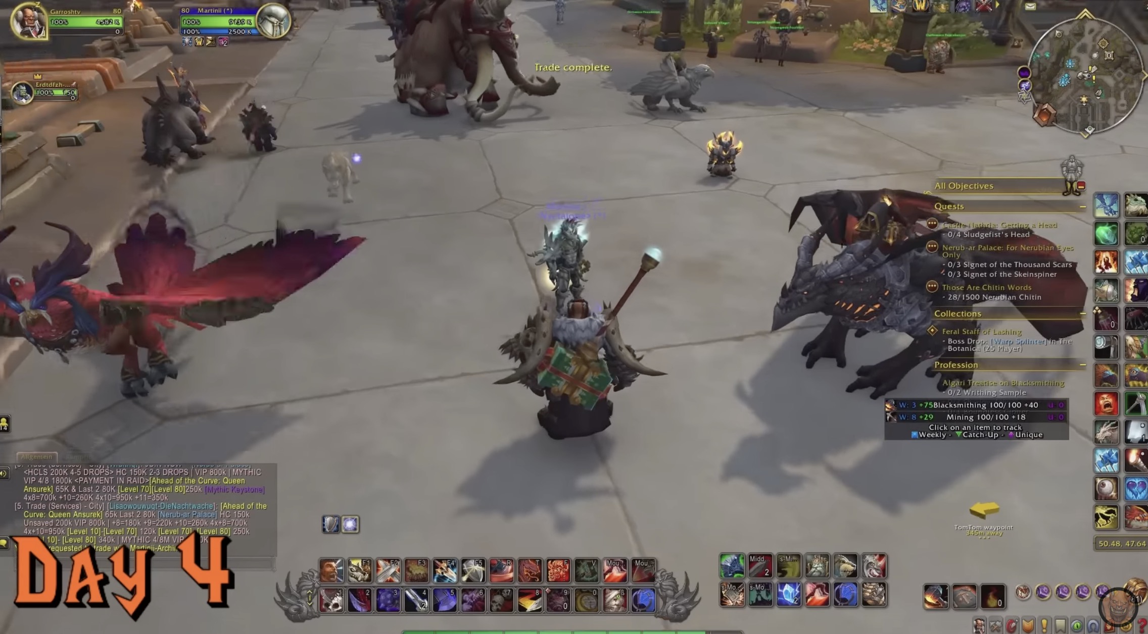 The sixth day was December 18 when the Siren Isle content update went live. Dornogal was really empty on that day. But GarroshTV had a mission and didn’t want to stop now, even though it was a tad slow day.