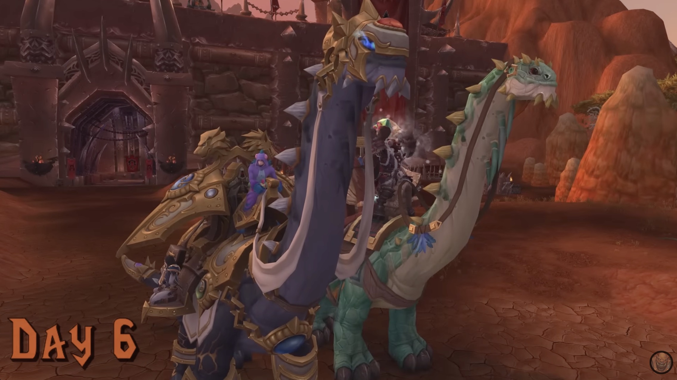 With 2 million gold left, GarroshTV converted WoW Tokens to Battle.net currency and bought his girlfriend the Trader’s Gilded Brutosaur on Day 6.