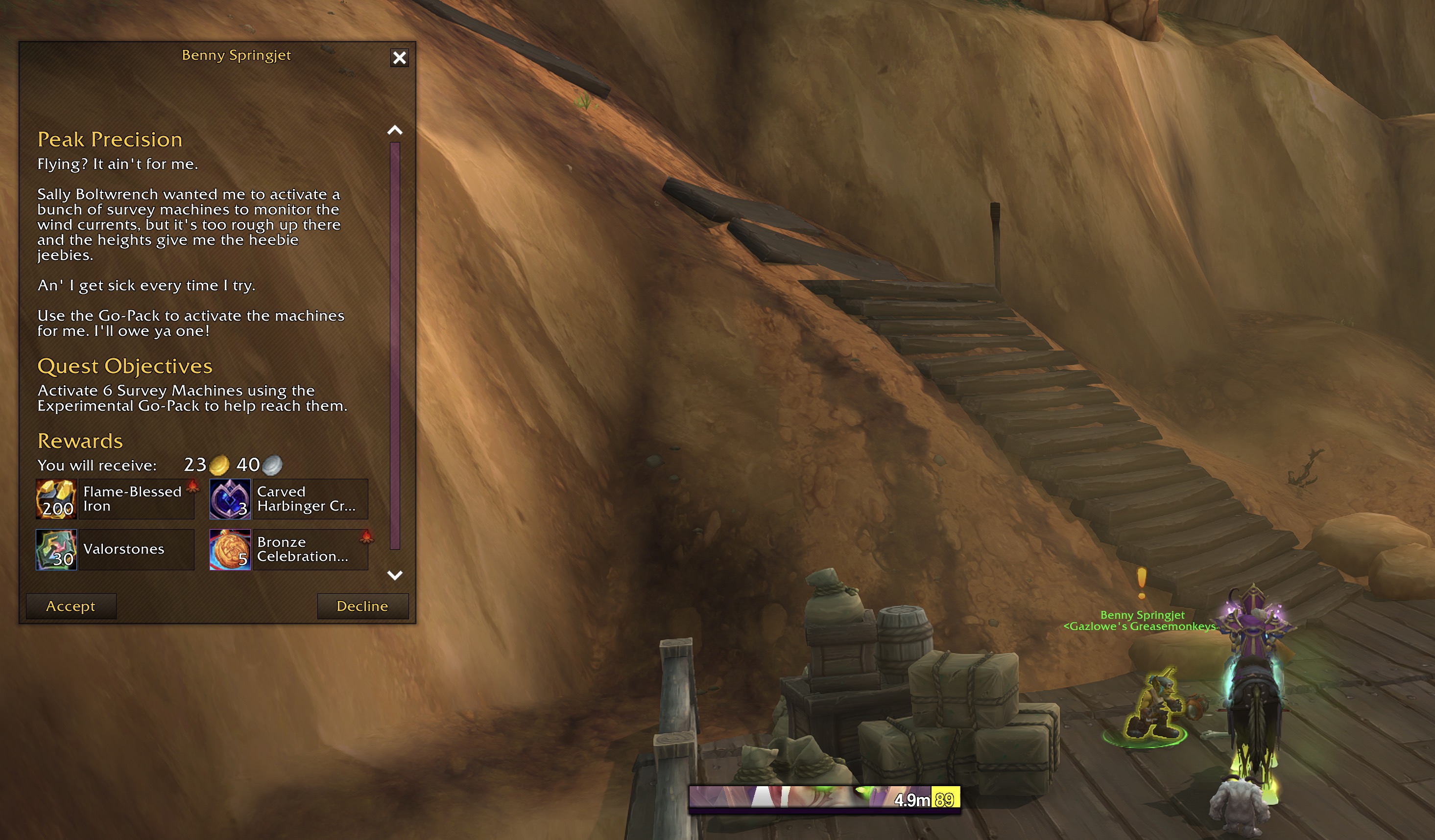 1. Head to the Center of the Siren Isle to find the quest giver and accept Peak Precision. This quest is your key to soaring the skies.