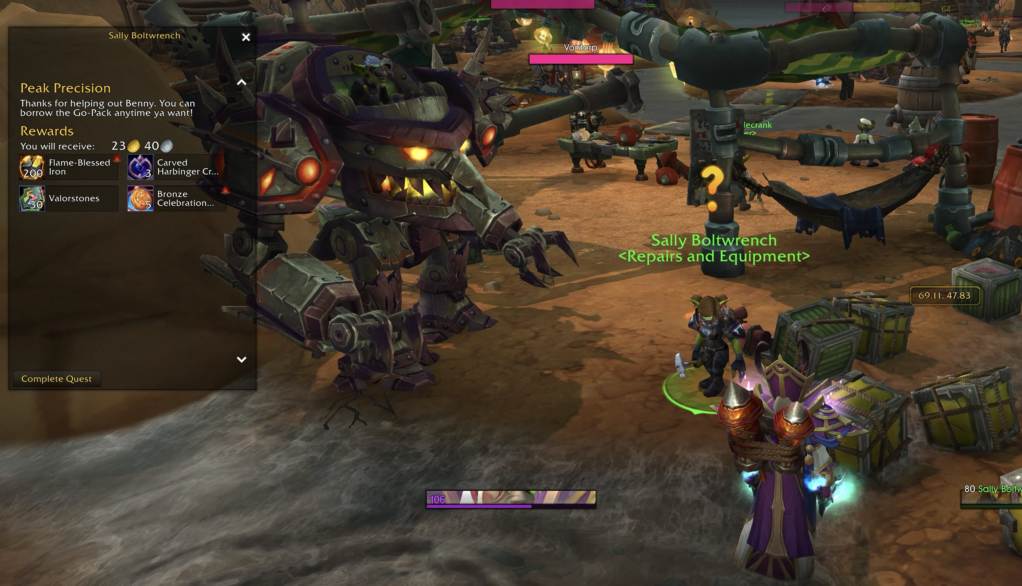 While you can complete the quest at Flotsam Shoal by turning it in to Sally Boltwrench and purchasing additional Go-Packs for 10 Flame-Blessed Iron each, you don’t need to. Simply, do not complete the quest to have unlimited uses of the Go-Pack ability completely free.
