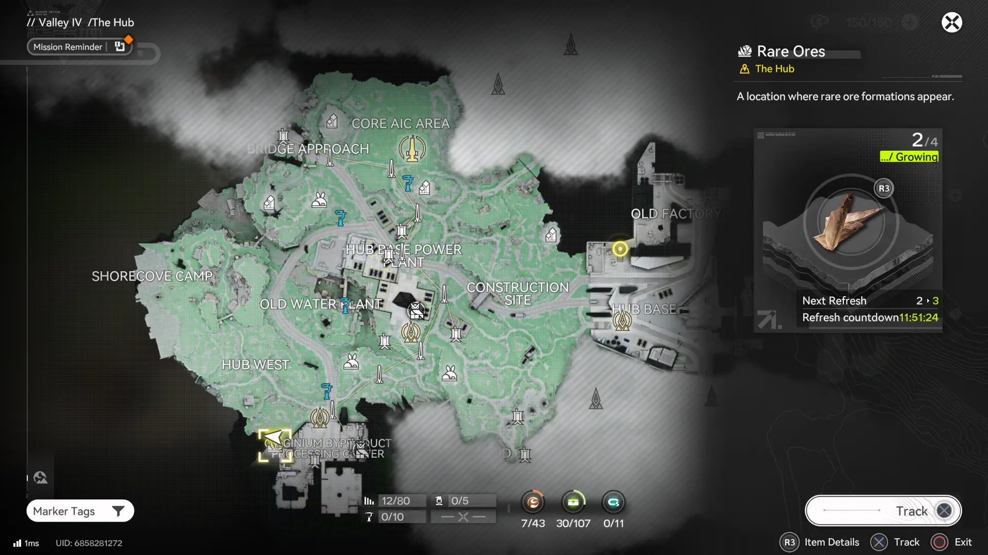 • Look for rare growth and ore indicators when you unlock a new part of the map. There are a few spots in each zone, not just the hub