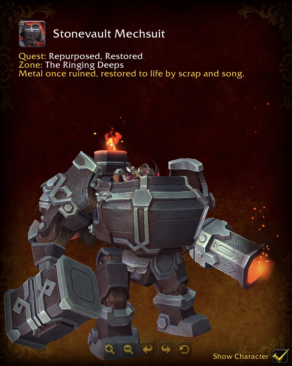 Malfunctioning Mechsuit from Void Speaker Eirich in Mythic Stonevault. - This will start the A Mech in Need quest that requires you to take the quest item to Speaker Jurlax in Gundargaz (Ringing Deeps).