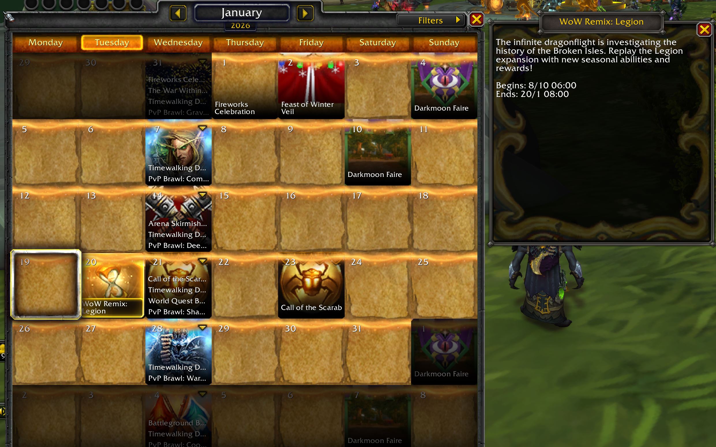 Today was/is the last day for the Legion Remix event, with it already being over on NA servers and having a few more hours left on EU. This was very much known, but it seems the in-game calendar didn’t track the exact timing correctly. This caused many players to be blindsided by Remix’s sudden conclusion.