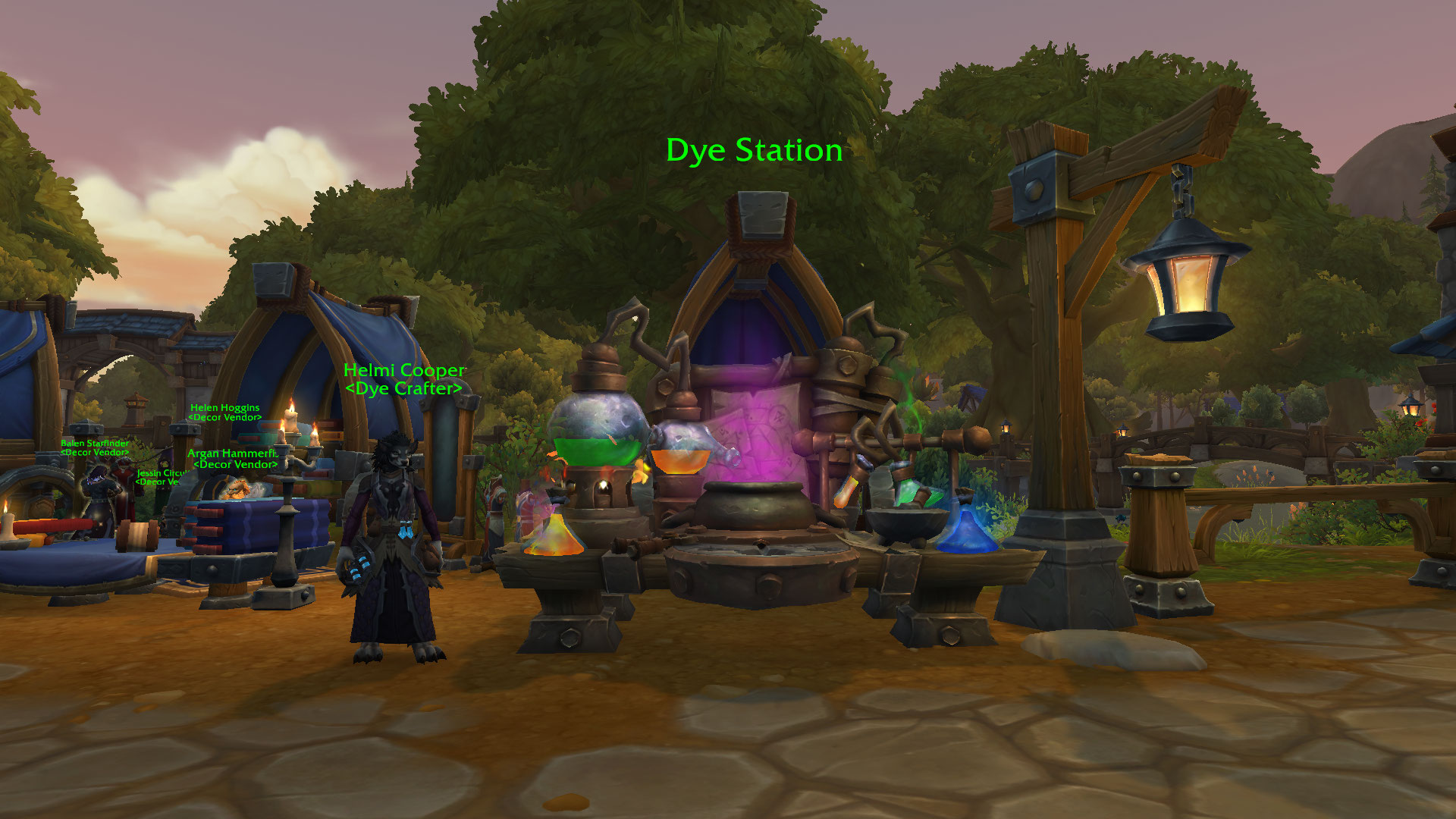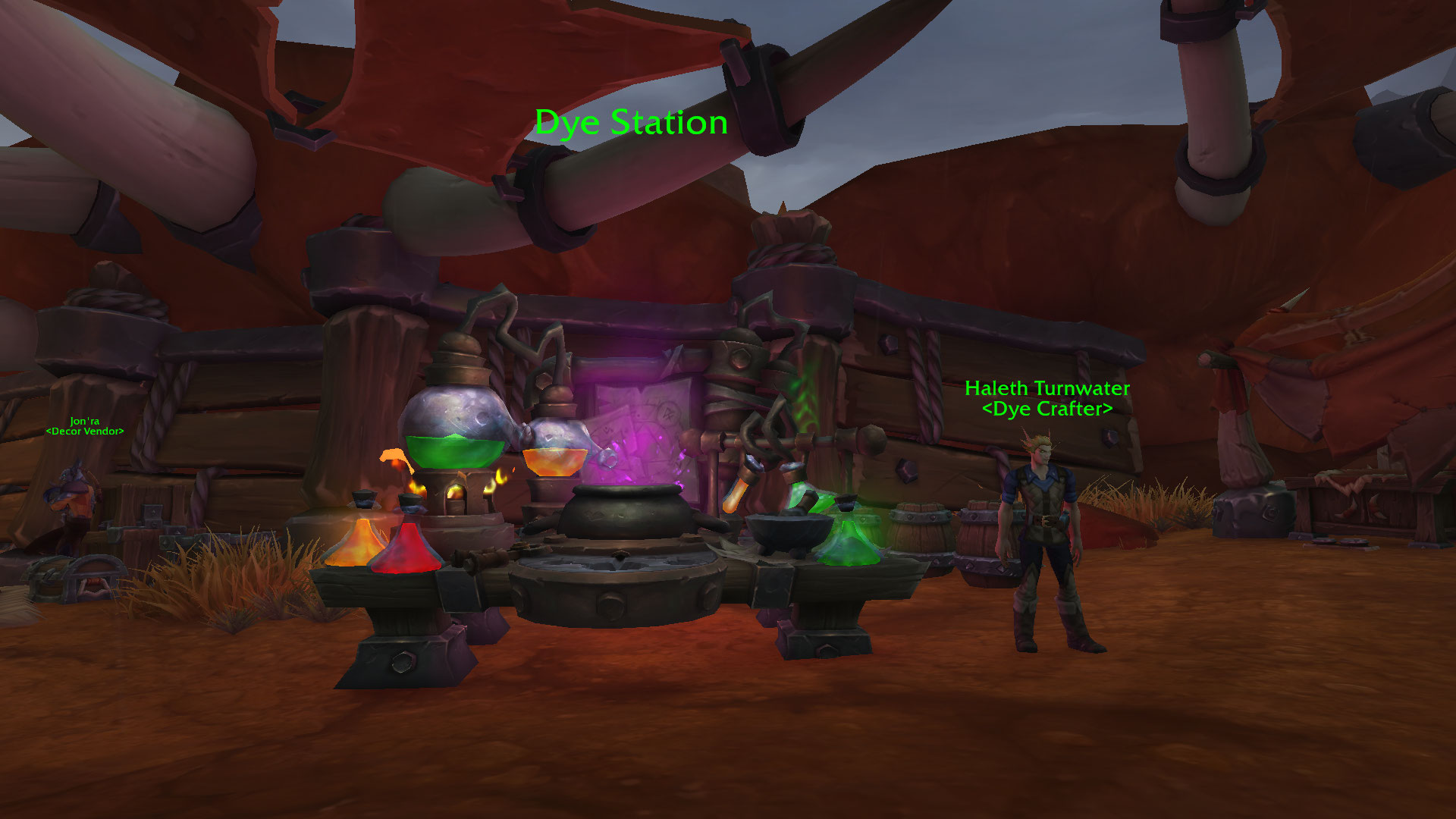 To create dyes, you’ll need to use the Dye Crafter, a specialised workstation located in the central hubs of Razorwind Shores and Founders Point—the Horde and Alliance housing neighborhoods.