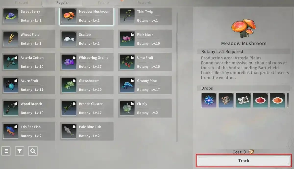 Botany has you roaming the overworld to gather herbs, fungi, and fruits from infinitely respawning nodes, which you can track via the Botany tab in your Life Skills menu.
