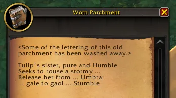 This step is based off of a Worn Parchment that is dropped off of the Divine Flame of Beledar once Orb 11 is completed.