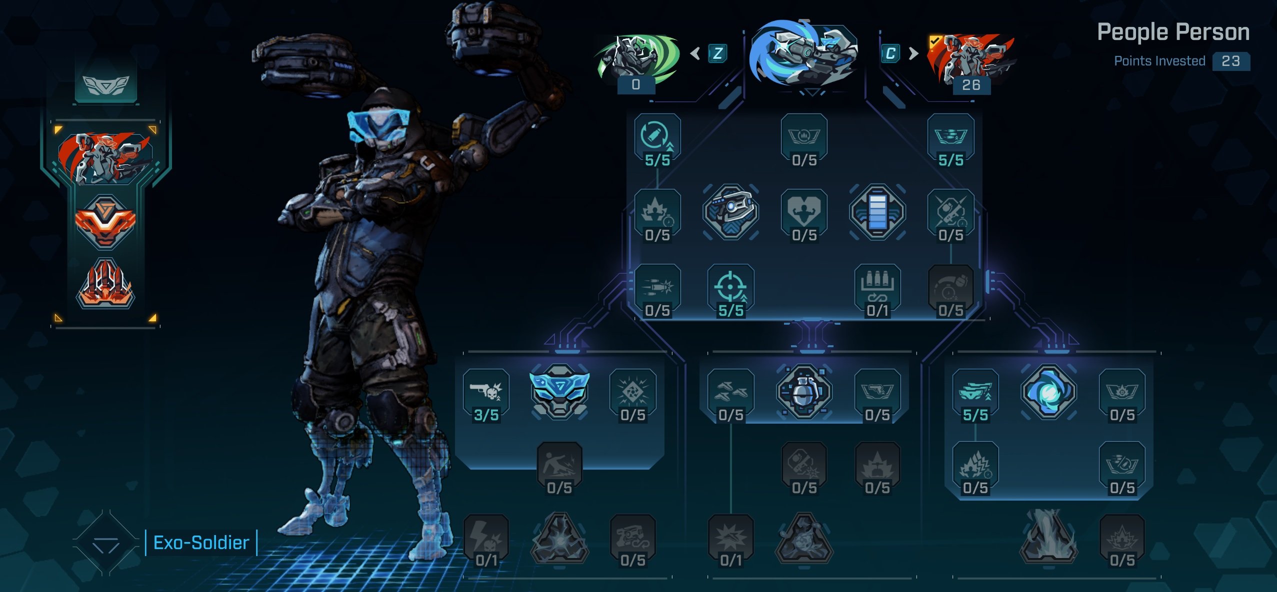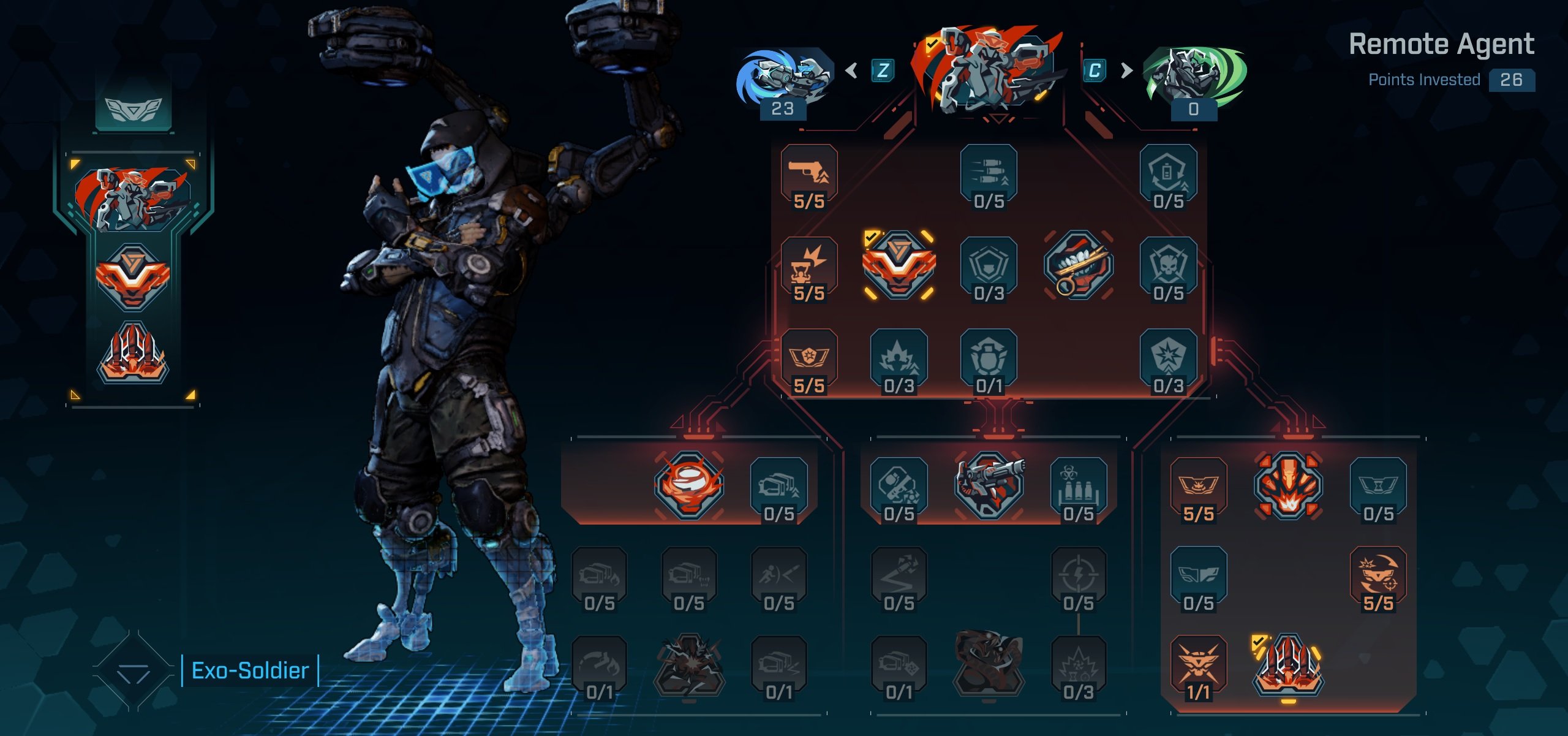 This Maximum Overdrive build heavily splits its skill points between the Remote Agent and People Person skill trees to access powerful Overdrive buffs deep in each respective tree. It makes use of the Peacebreaker Cannons Action Skill paired with the Instinto Augment which allows it to keep the Overdrive Trait active for as long as possible. This leaves Volatile Hollowpoints as its only available capstone.