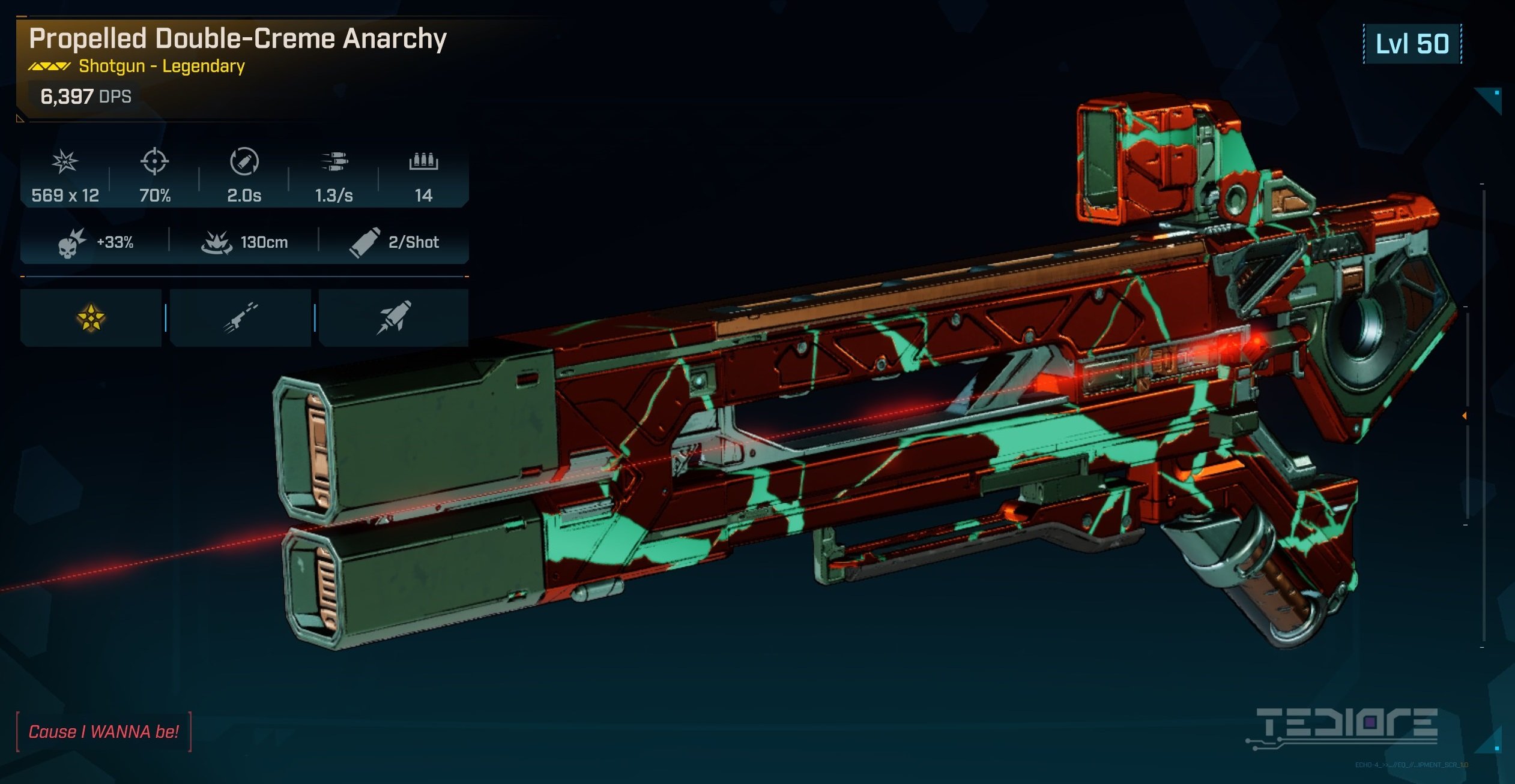 - Anarchy – This Shotgun can automatically replenish ammo when killing enemies while buffing its damage in the process, making it a great mobbing choice for the build.