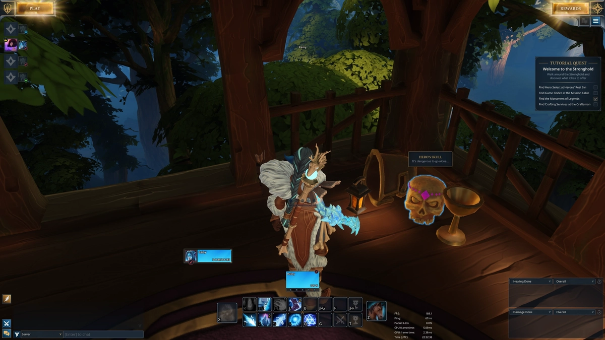 There are jump puzzles within Fellowship that allow you to reach high vantage points within the Stronghold. With the clue from the Sir Bombastic mount listing, we can infer that the beginning of a jump puzzle is located at the iconic Stronghold gates. Following this platforming puzzle leads you to the top of a tower. At the top of this tower is a Hero’s Skull with a tooltip that reads: “It’s dangerous to go alone…” A nod to the Legend of Zelda series also potentially doubling as a clue to another puzzle location.