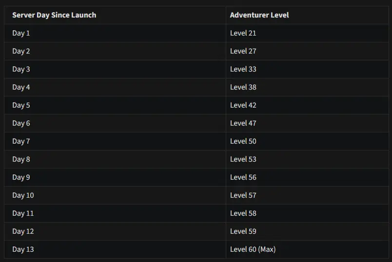 It’s also worth noting that there’s a level cap tied to the number of days since launch. This means you won’t be able to grind to the top ranks on day one. Here’s a visual to show how the level cap works: