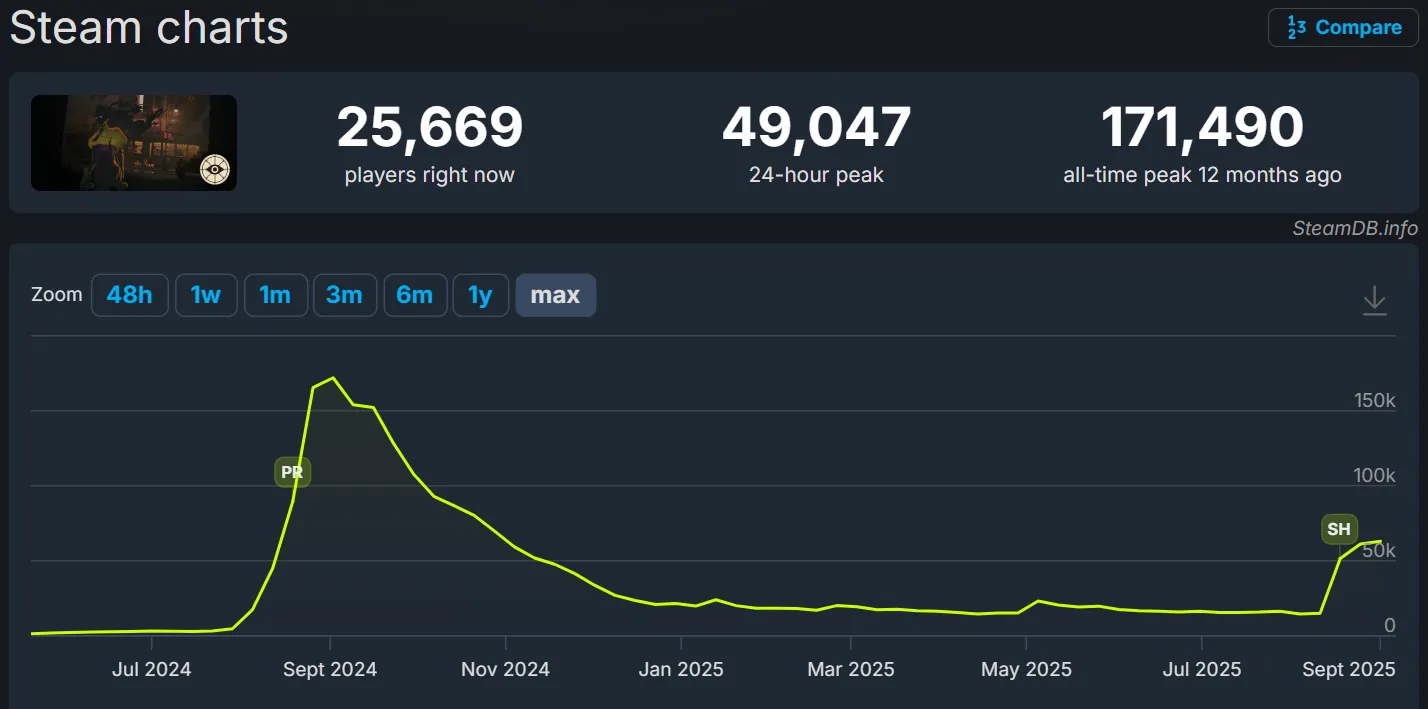 Recent updates added six new heroes (each revealed via player vote), a moody visual rework, and an immersive new “hideout” hub that replaced menu screens. The result is a ton of players flooding back, even though the game is still invite-only!