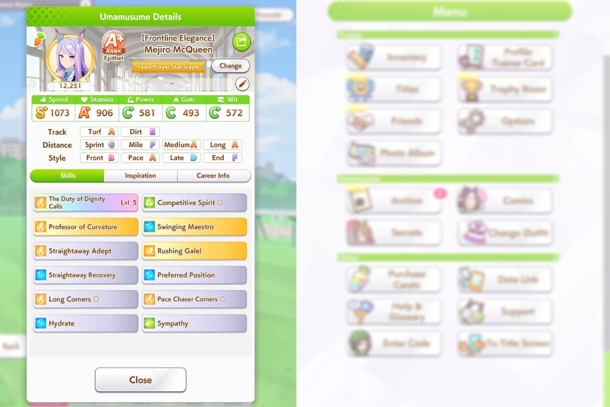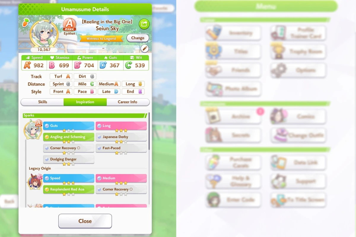 Make sure the Aptitude of your Umas for Long races is “S.” You can manage if your Uma has at least an A in Long. But in an ideal situation, your character should have an S in Aptitude, Turf, and your preferred strategy.