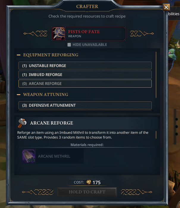 - Heroic Attunement: Rerolls Heroic traits for 1 Hero’s Godstone and 400 Gold