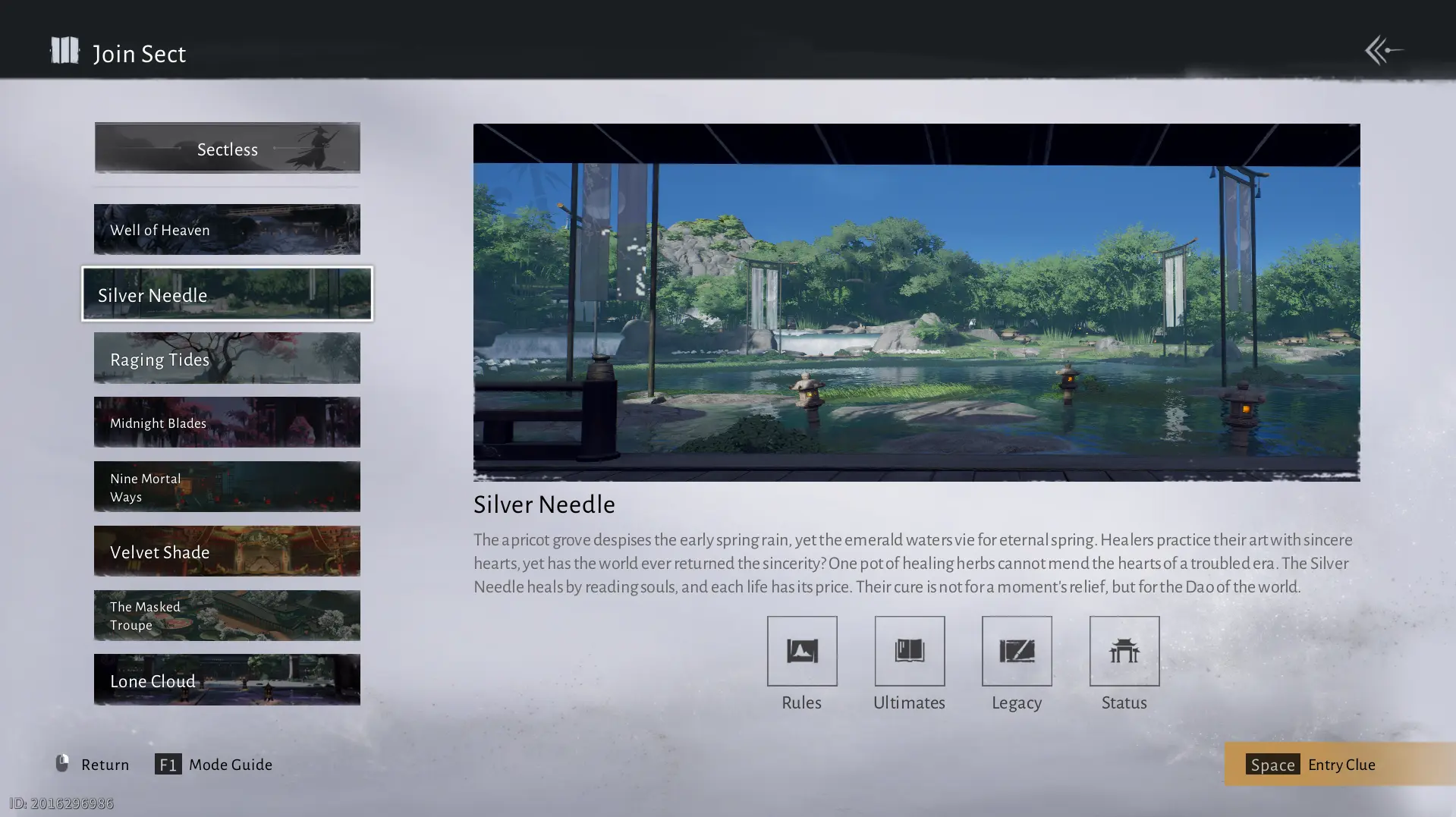 Silver Needle is the perfect home for healer mains. This Sect focuses entirely on curing, supporting, and gaining reputation through helping others. It is less about fighting and more about being the reliable doctor everyone relies on.