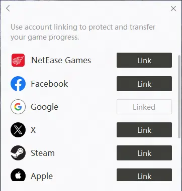 - Select and link the platform account you want to connect (Steam, Epic, PSN, Gmail, etc.).