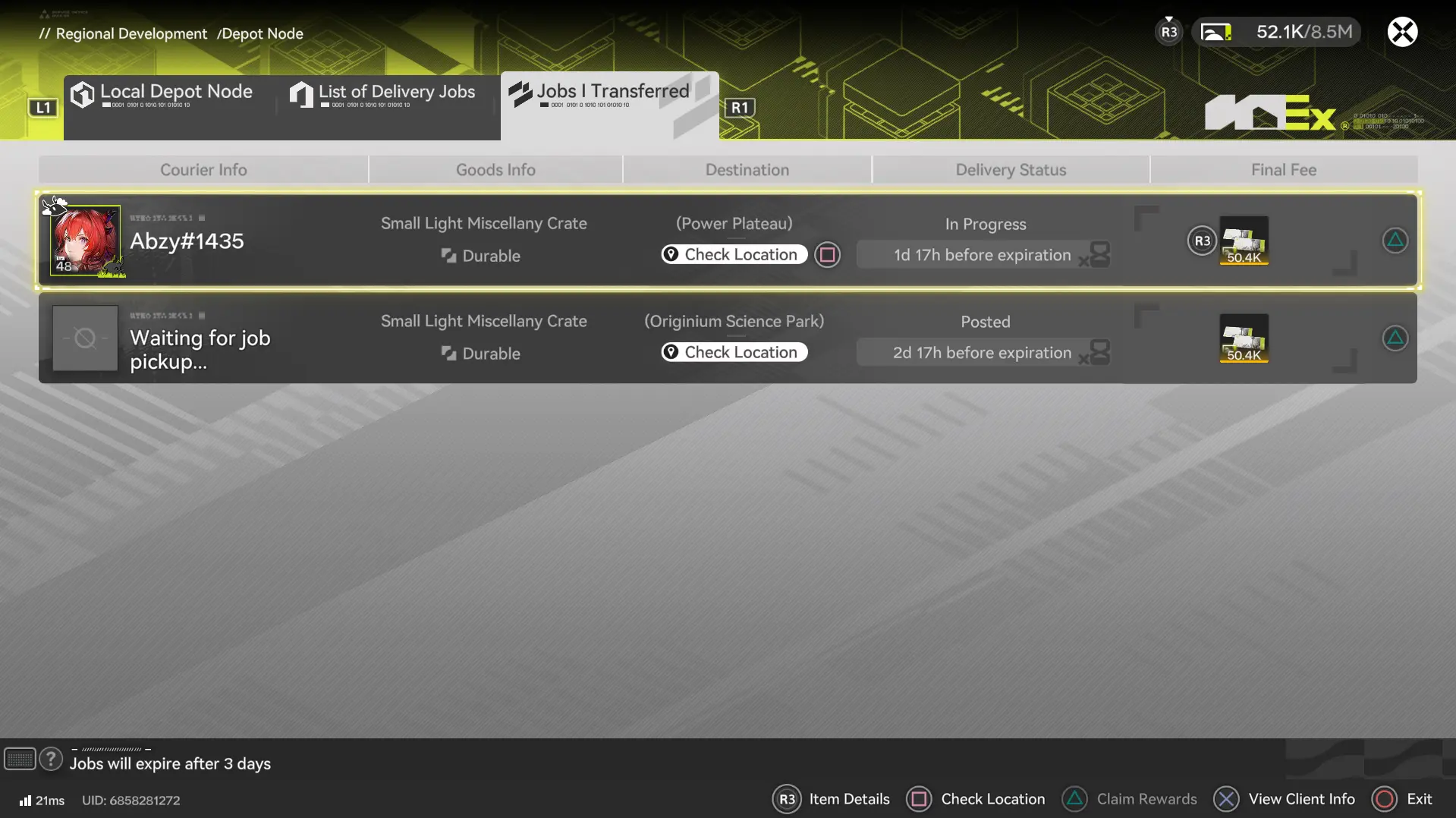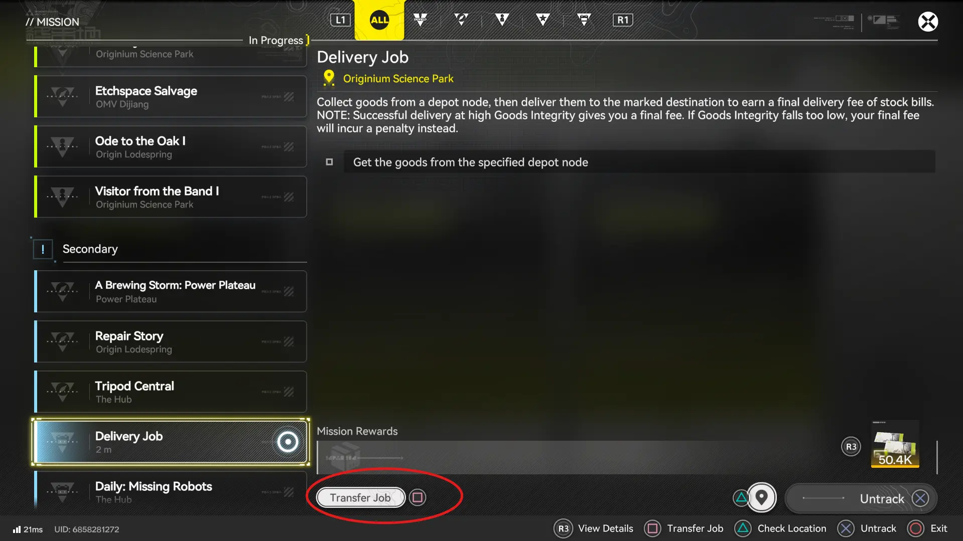- Transfer the job: Instead of picking up the package, open the depot or your Missions, check the delivery mission, and select “transfer the job.”