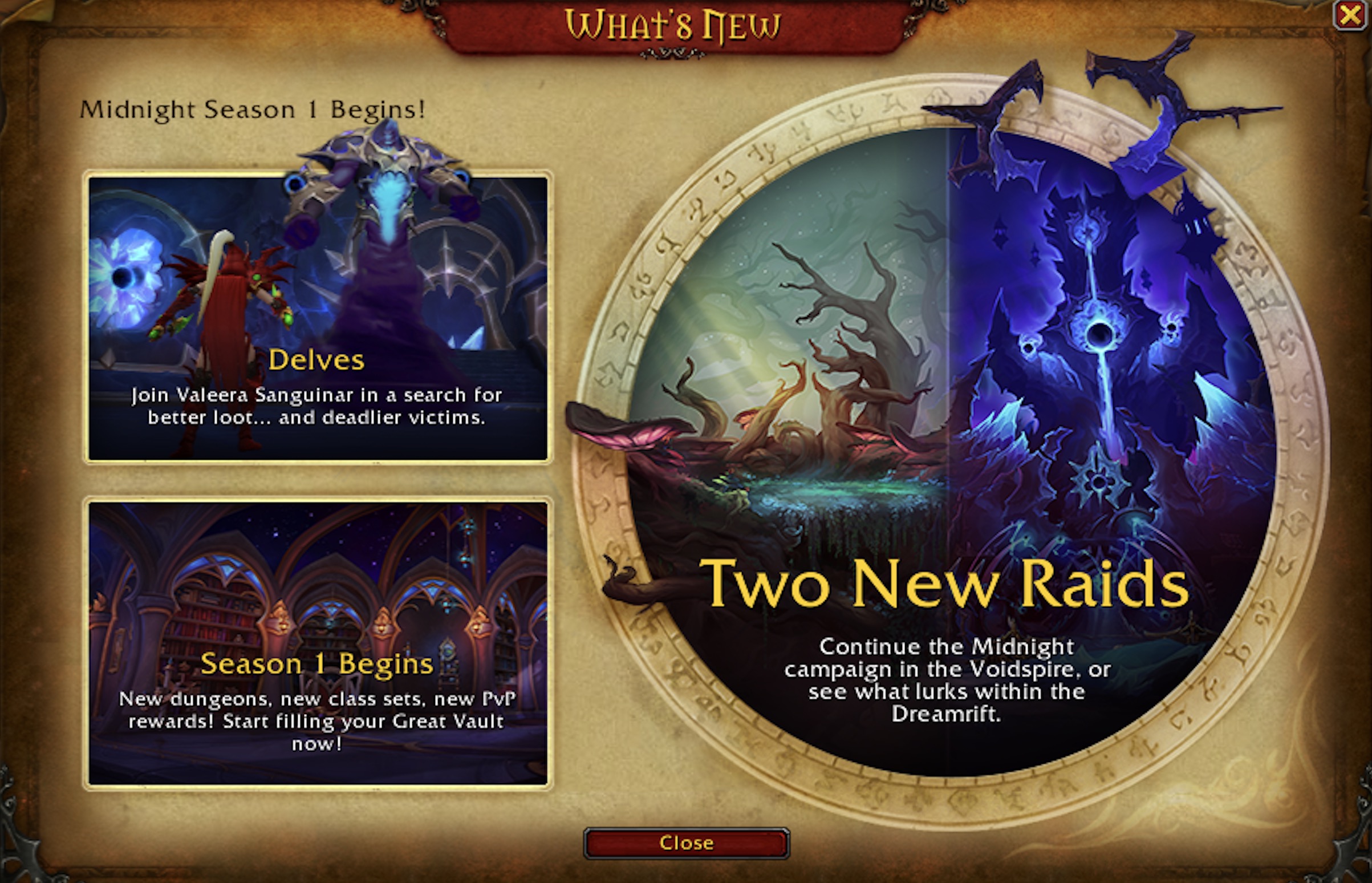 Whenever a new patch launches, players are greeted with a splash screen that reveals the main features available in the content update. The Midnight expansion is no different. Blizzard has added splash screens for expansion launch as well as the Season 1 start, let’s take a look!