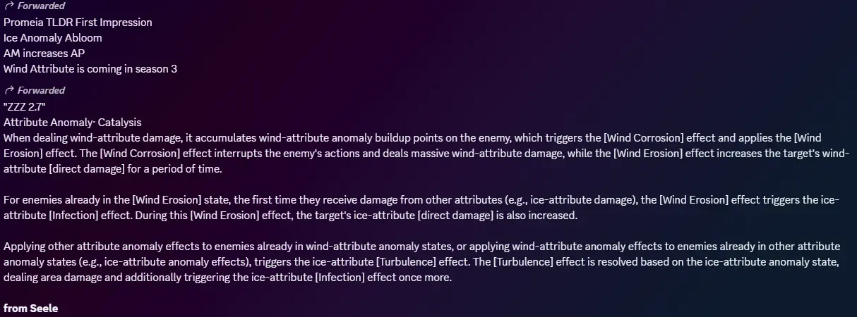 One of the more interesting things that players pointed out is that Promeia does not seem fully “self-contained.” Instead, her kit appears to rely heavily on interactions with other attributes, especially future Wind-based agents or systems.